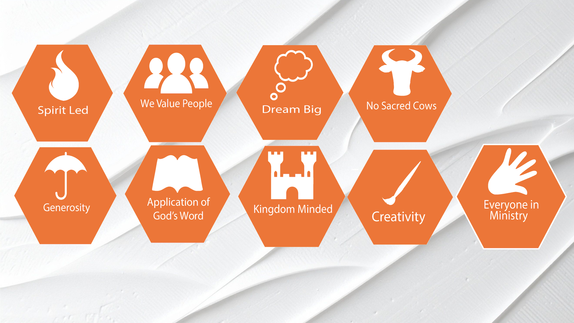 9. We Value People: We go ridiculously out of our way to help people feel welcome. We freely give honor to those above us, beside us and under us. John 3:16; Matthew 5:43-48